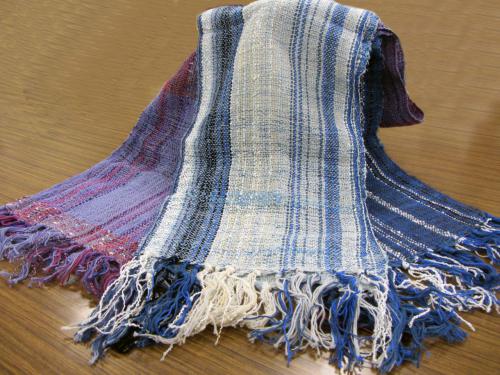 備中綿の手つむぎ糸をふんだんに使い、職人が一本一本織り上げた手織りのストールです。天然繊維の柔らかな風合いはやみつきになります。